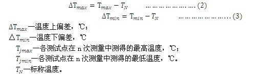 恒定濕熱試驗(yàn)設(shè)備的溫度偏差按下式計(jì)算: